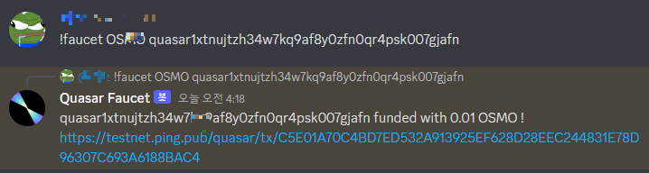 이와 함께 디스코드를 통한 Faucet을 이용도 진행해보겠습니다.