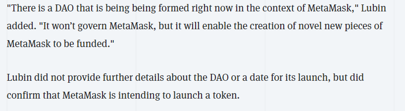 "메타마스크 DAO 및 거버넌스 토큰 출시를 준비하고 있다."