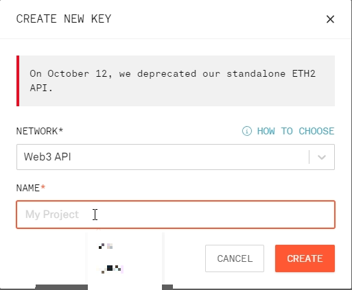 NETWORK는 'Web3 API'를 선택해주시고 NAME에는 원하는 이름을 적어주시면 됩니다.