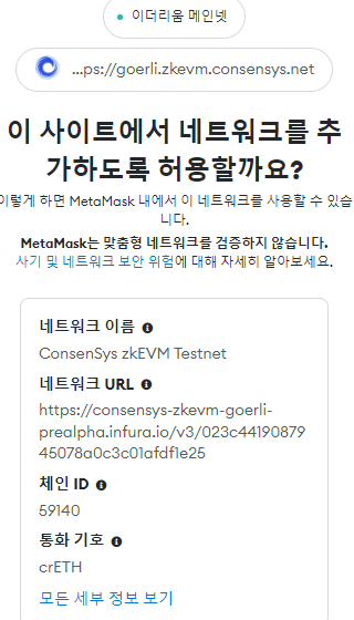 그리고 3번 항목에서 ADD ZKEVM TESTNET을 누르시면 ZKEVM 테스트넷 RPC가 메타마스크에