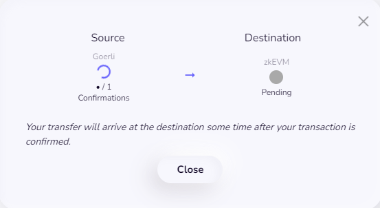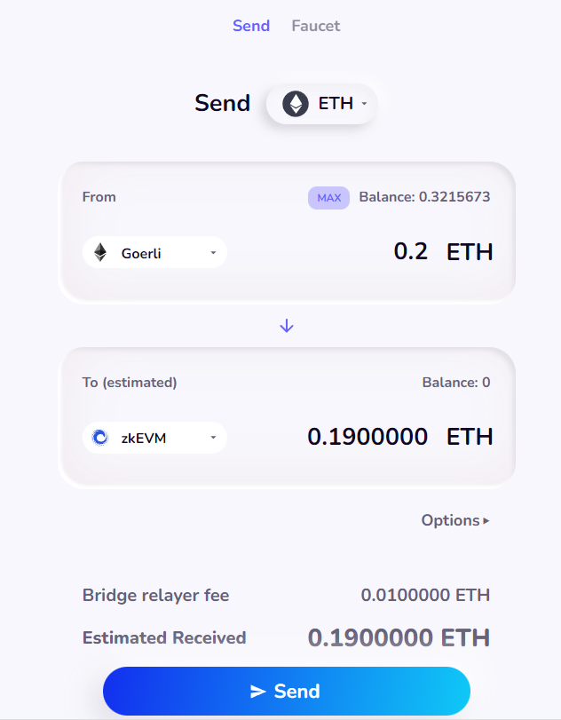 보낼 네트워크는 'Goerli', 받을 네트워크는 'zKEVM'로 설정해주시고 갖고 원하는 만큼