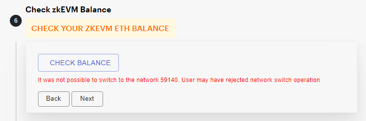 다음은 이더리움 테스트넷의 ETH를 브릿지를 이용해 zKEVM 네트워크로 가져와야합니다.