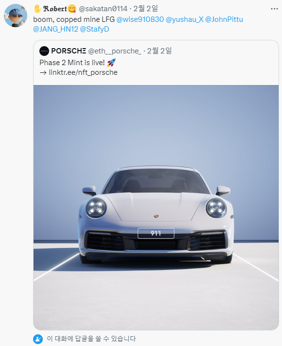 언뜻 보면 얼마 전 진행했던 포르쉐911 민팅 관련 소식이구나? 라는 생각을