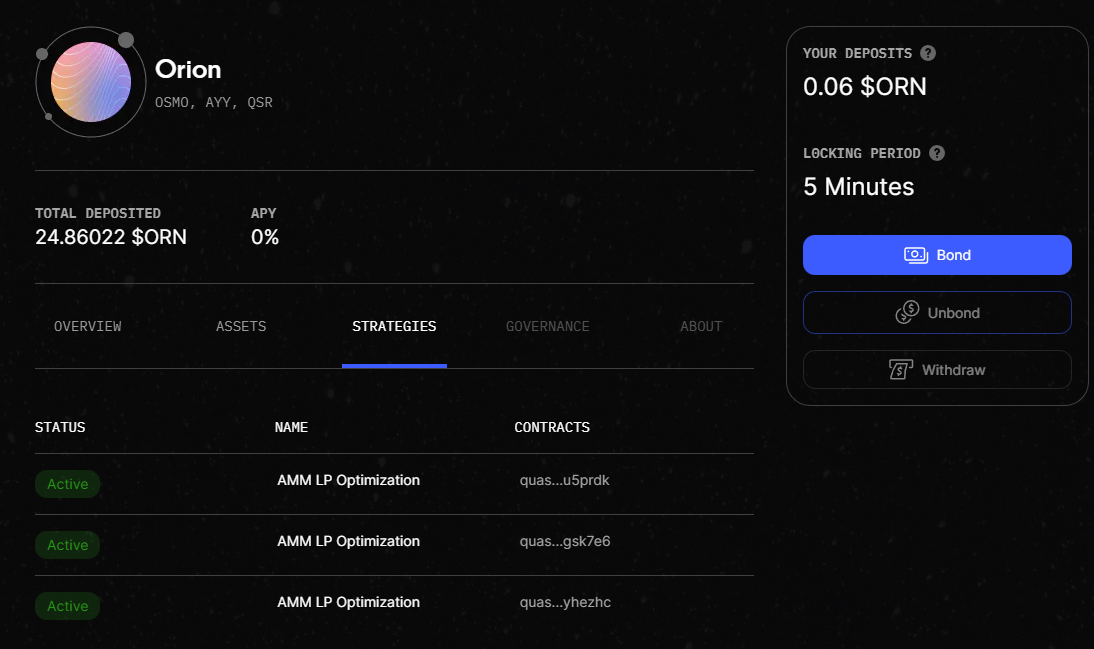 Quasar(퀘이사)는 코스모스 기반 디파이 프로젝트로 코스모스 내의 다양한 자산을 볼트로 묶어